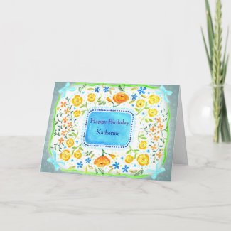 Pretty Yellow & Orange Floral Custom Name Birthday